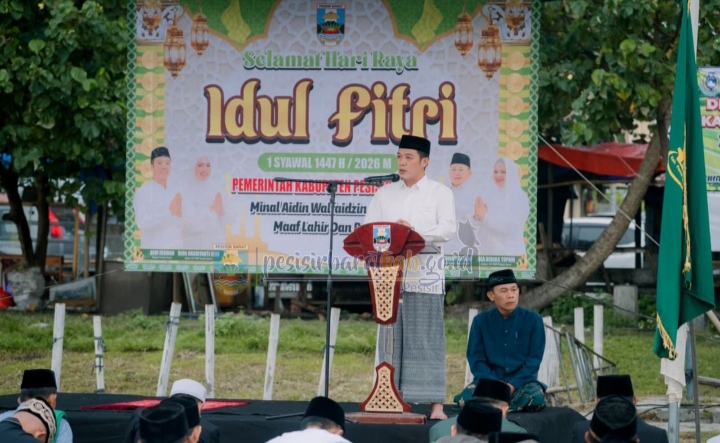 Dalam sambutan Bupati Pesisir Barat menyampaikan, atas nama pribadi, keluarga, dan Pemerintah Kabupaten Pesisir Barat, dengan segala kerendahan hati saya menyampaikan, Selamat Hari Raya Idul Fitri 1447 Hijriah, Minal Aidin Wal Faizin, Mohon Maaf Lahir dan Batin.